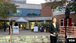 美美国之音中文部记者海伦大选日在弗吉尼亚州一处投票站采访和报道。
