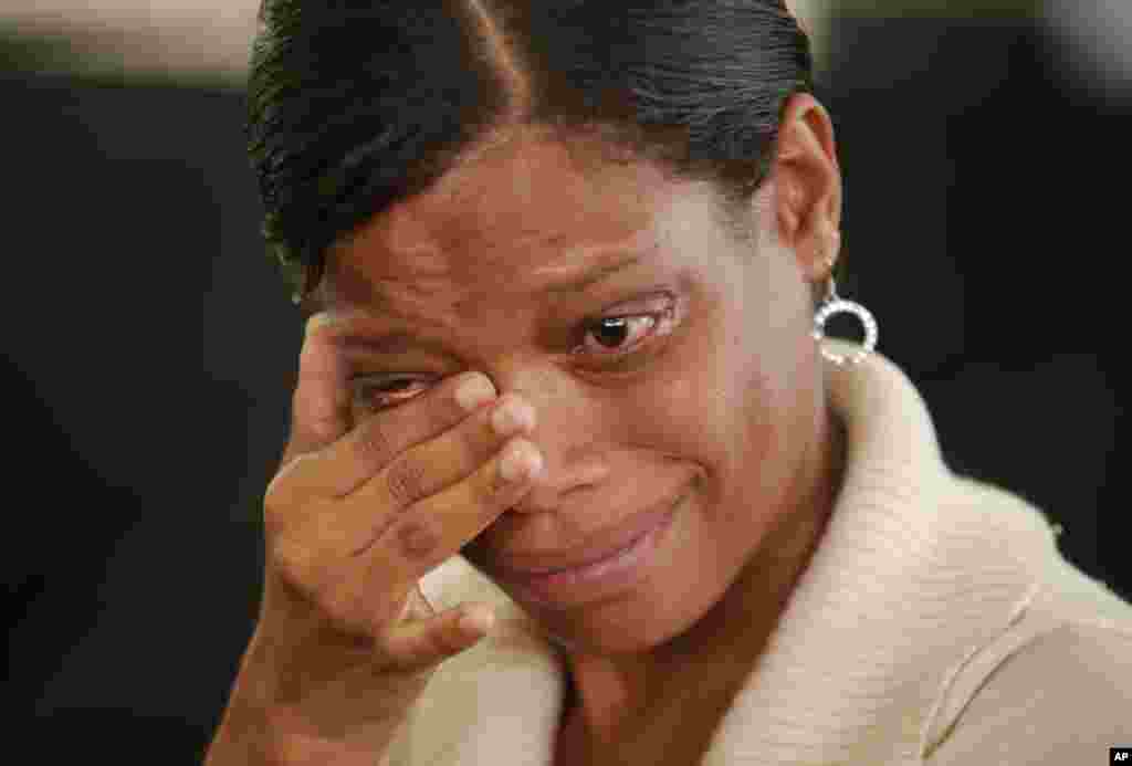 在约翰内斯堡,一位妇女在曼德拉基金会的大屏幕上观看前总统曼德拉的葬礼时拭去泪水。